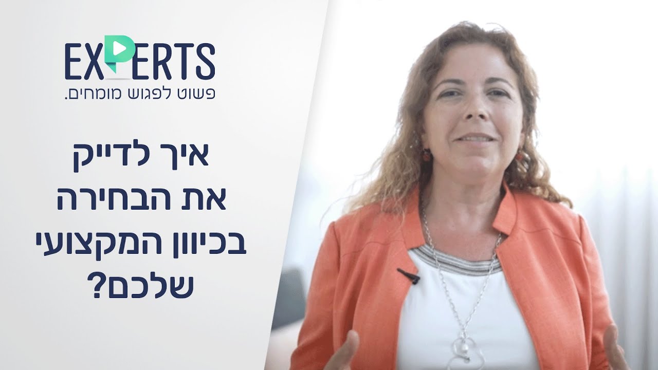 מומחית בליווי בקפיצות קריירה, במציאת כיוון מקצועי חדש ומלהיב רגשית לצד היותו מפרנס ופרקטי. תהליך הליווי מאפשר לבחור כיוון מקצועי שהוא תוצר של דיוק מהיר ומעמיק של חוזקות אישיות ייחודיות, תחומי התלהבות ותשוקה, התייחסות למצפן האישי של מה שחשוב לנו בעבודה ובחיים, ושיקולים פרקטיים ליצירת פאזל שמדייק כיוון מקצועי מלהיב ומעשי.